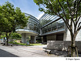 地下一階、地上四階建ての建物は、建築家安藤忠雄氏の設計であり、二つの三角形を重ね合わせた特徴的な造りになっています。令和7年7月には、本に親しめる滞在型の図書室「こども本の森 松山」が増築する形でオープンしました。
